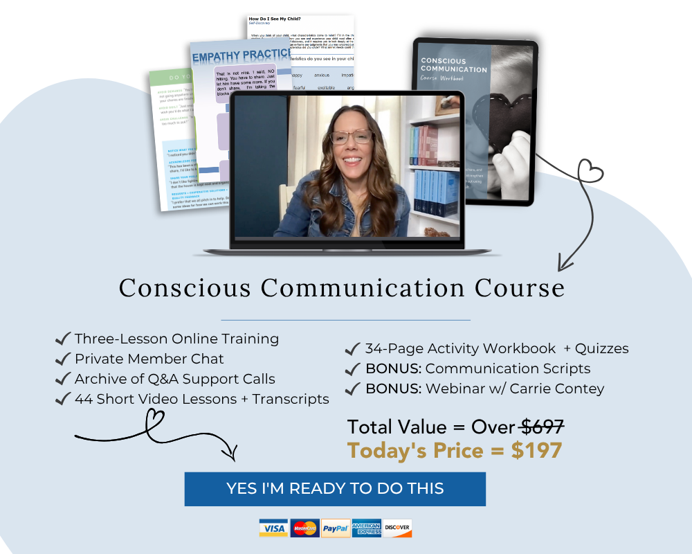 Conscious Communication and being "heard" is not outside your reach, and a community like this, along with the monthly live support, is a game-changer for many families. They see dramatic changes in the level of cooperation and connection that they feel from their kids after implementing what they learn.